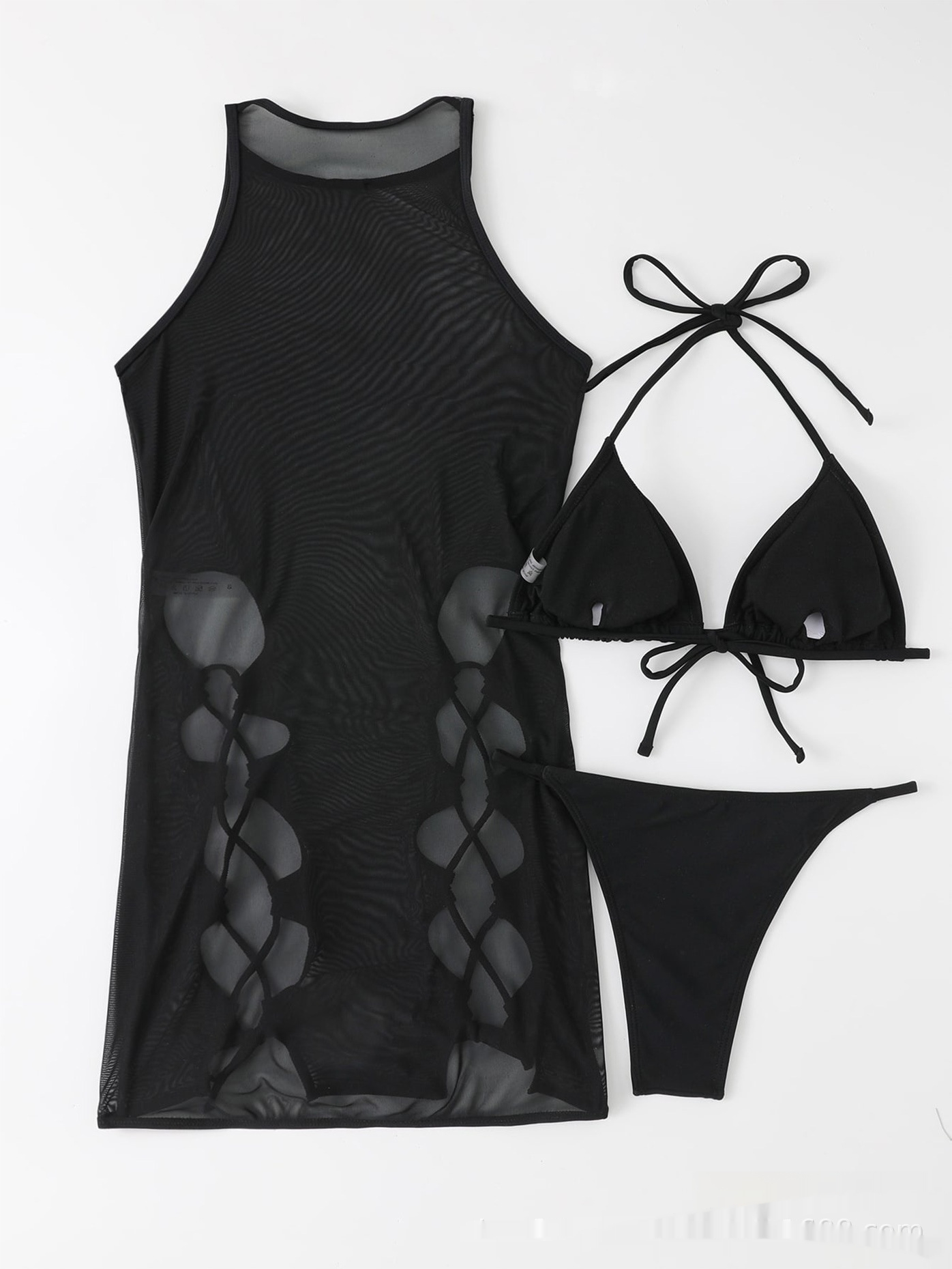 Complete three-piece bikini set with matching cover-up — everything you need for a stunning beach look. Made from premium quick-dry fabric with a flattering fit designed for all body types. Perfect for vacations, pool parties, and beach days.