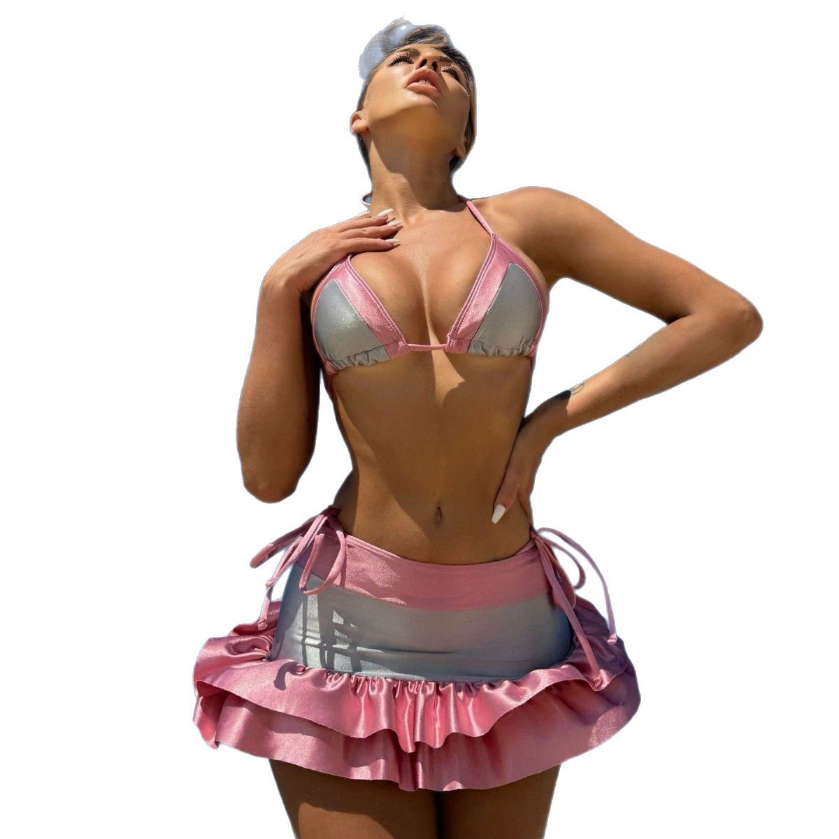 Crafted from a high-quality blend of nylon and spandex (typically 82% nylon, 18% spandex), this three-piece swimsuit set offers the ideal combination of stretch, support, and shape retention. The four-way stretch fabric moves with your body, providing unrestricted comfort whether you’re swimming laps, playing beach volleyball, or simply soaking up the sun.